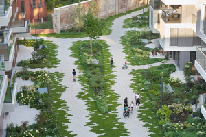 „Die Frage ist doch, was braucht es, um sich wohlzufühlen? Gerade, wenn sehr dicht gebaut wird, müssen die Räume und Flächen dazwischen eine hohe atmosphärische Qualität aufweisen. Dabei spielt Grün und das sinnliche Erleben von Natur eine große Rolle“, so Martin Rein-Cano, Geschäftsführer des beteiligten Landschaftsplanungsbüros Topotek1 aus Berlin. „Vor gut 100 Jahren entsprach die klare Gliederung der Stadträume den Lebensgewohnheiten ihrer Bewohner: Wohnen, Arbeiten und Erholung in angelegten Parkanlagen waren klar voneinander getrennte Bereiche. Heute haben sich die