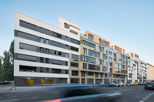 schossigen Townhouses und Penthäusern in den Staffelgeschossen. Während in den Häusern an der Straße und dem westlichen Flügel Mietwohnungen angeboten werden, handelt es sich bei den übrigen Wohneinheiten um Eigentum, beides im gehobenen Segment.