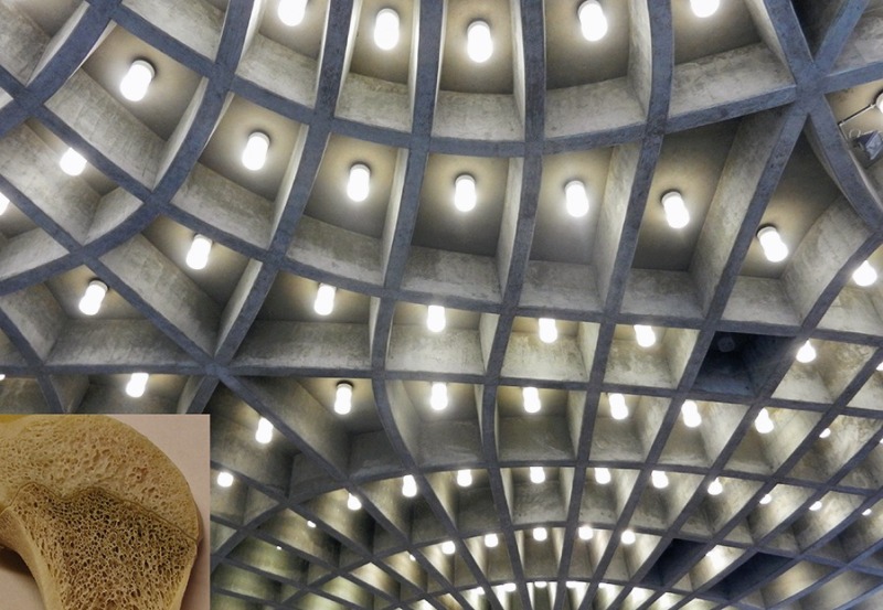 Als der Architekt Hans-Dieter Hecker in den 1960er-Jahren den Rundbau des ehemaligen Zoologie-Hörsaals der Universität Freiburg plante, orientierte er sich an Prinzipien aus der Natur: Bei den Knochen von Lebewesen schaute er sich ab, wie ein Bauwerk zugleich stabil und leicht sein kann. Ein Forscherteam von der Plant Biomechanics Group an der