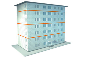 Ist ein WDVS der Baustoffklasse B1, schwer entflammbar, gefordert, dann sind auch bei Gebäuden ≤ 7 m Höhe (bis Fußbodenoberkante des letzten Geschosses, in dem Aufenthaltsräume möglich sind) durchlaufende Brandriegel oder Mineralwollestürze erforderlich.