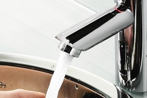 exakte Erwärmung des Wassers auf die gewählte Wunschtemperatur wird Energie und Wasser eingespart. Zu noch mehr Wassereinsparung trägt die Einstellung der optimalen Durchflussmenge sowie ein Strahlregler bei. Die gewählte Temperatur wird über einen LED Farbring im stufenlosen Verlauf von blau bis rot angezeigt. Wasser fließt nur, solange die Hände des Nutzers vom Sensor erfasst werden, während des Einseifens stoppt der Wasserfluss automatisch. Das senkt den Wasserverbrauch noch einmal erheblich. Die Kombination von energiesparendem Durchlauferhitzer und wassersparender Armatur am Waschbecken ist damit nicht nur hygienisch und komfortabel, sondern auch umweltfreundlich und kostensparend.