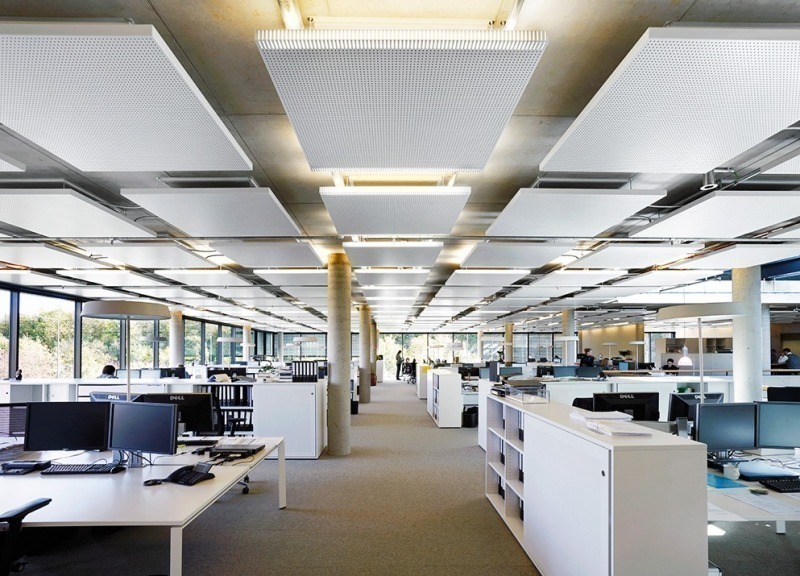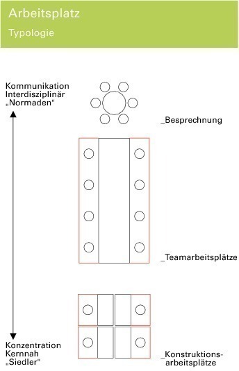 Ein wesentlicher Aspekt in der Gestaltung liegt in der Offenheit und Transparenz, die spontane Kommunikation fördern. Barrieren, wie etwa an eine Tür zu klopfen, entfallen. „Wenn ich an jemandem vorbei gehe, merke ich, ob er für ein Gespräch bereit ist, ob er aufschaut oder in seiner Arbeit vertieft ist“, so Yvonne Stein, die Projektleiterin. Die Büroebenen sind als Split-Level angeordnet und ermöglichen den visuellen Kontakt auch zu weiter entfernt sitzenden Kollegen. Die Anordnung der Arbeitsplätze in Vierer- und Sechsergruppen schafft eine hohe Flexibilität für die Teambildung zum Projektstart. Die Arbeitsbereiche setzen sich aus den ruhigeren Plätzen an der Fassade und den lebhafteren am Atrium zusammen. Dabei sind die Arbeitsplätze in Ausstattung und Gestaltung durchweg gleich behandelt, was die Firmenphilosophie der flachen Hierarchie unterstreicht.