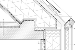 Die Fassade besteht aus 40 cm dicken, vollgedämmten Holzelementen und ist mit einer Schalung aus Douglasie verkleidet. Auf der Südwestseite ersetzen Solarkollektoren die Holzschalung. Die Kollektoren wurden geschossweise gegeneinander versetzt und rhythmisieren die Fassade im Wechsel mit raumhohen, dreifachverglasten Fenstern.