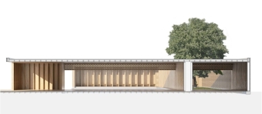 An der Fakultät für Architektur und Stadtplanung in Stuttgart realisierten Studentinnen und Studenten des zweiten Studiensemesters einen Holzpavillon im Stuttgarter Stadtgarten. Im Rahmen des IBA’27-Festivals 2023 vom 3. bis 23. Juli stand dieser als Aktionsraum der Stadtgesellschaft offen. Angeleitet wurde das Selbstbauprojekt von Prof. Jens Ludloff, der den Lehrstuhl für Nachhaltigkeit, Baukonstruktion und Entwerfen an der Universität Stuttgart innehat. Im Projekt „Demokratische Konstruktionen“ konnten die Studenten in der Auseinandersetzung mit historischen Tragwerken eigene Strukturen entwickeln. Sie sollten den dabei notwendigen Materialeinsatz zur Raumbildung ausloten. Innerhalb eines Nachmittags entstanden insgesamt 200 Entwürfe. In Dreiergruppen entwickelten die Studentinnen viele dieser Ideen zu Modellen im Maßstab 1 : 20 weiter. Gemeinsam wurden schließlich 39 Modelle für die Realisierung im Maßstab 1 : 1 ausgesucht. Am 1. Juli konnten die Studenten jeweils zu Fünft Probeaufbauten aus Dachlatten mit einer Maximallänge von 2,50 m errichten. Die Tragfähigkeit wurde mithilfe von Sandsäcken überprüft. Nach einzelnen Verbesserungen konnten die Tragwerke im Stadtgarten aufgebaut werden. Anschließend wurden sie mit einer Hülle aus Stoff überzogen. „Dieses 40 m lange Testfeld, mit einfachsten Mitteln aus Dachlatten erstellt, zeigt auf, wo Architektur beginnt, die sich als Teil der Stadtgesellschaft versteht. Bauen wird hier zur sozialen Plastik“, erklärt Jens Ludloff. Für die Eröffnung bauten sich die Studentinnen ihren eigenen Holzhocker, auf dem sie während der Feier saßen. Abgebaut wurde der Pavillon vom Kollektiv Allesamt, das die Konstruktionen für Kulturveranstaltungen weiternutzt.