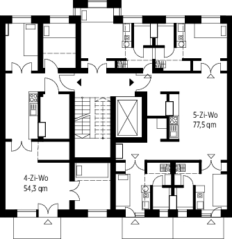 Mit dem Co-Being House Baukasten (COB) sind sowohl WG-Grundrisse als auch klassische Grundrisse möglich. Exemplarisch sollen hier drei unterschiedliche Wohnungseinheiten aus dem COB erläutert werden. Die Grundrisse sind auf Basis eines Mietzinses von 20 Euro/m² bruttokalt entwickelt: