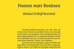 Dem literarischen wie auch soziologischen Herkommen – und natürlich den Zeitumständen – verdanken wir eine heute weitgehend in Vergessenheit geratene Schrift aus dem Jahr 1995 mit dem schon zur Parole geformten Titel „Nutzen statt Besitzen“. Der leichtfüßige wie zugleich ambitionierte, antiquiert hochsprachlich daherkommende Essay – „ohne neue Bilderwelten, Attraktionen und Gemütlichkeiten anzubieten und ohne ständig das Wort ‚Design‘ zu zitieren“ (Michael Erlhoff) – skizziert eine gesellschaftswirksame Vision, die viele Debatten vorwegnahm (auch die heutigen). Neben Degrowth, Commons, dem Designkonzept C2C oder der Problemlage einer gerecht gestalteten Umwelt ist die Frage nach dem Wesen des immer schon dogmatisierten Begriffs „Besitz“ eine die großen Problematiken der Weltgesellschaft wesentlich durchdringende.