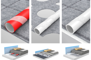 Das System umfasst drei Varianten: Das tempusFLAT KLETT-System mit einer 2 mm dicken Kunstfaser-Deckschicht mit Klettwirkung für Konstruktionen mit Estrich nach DIN 18560 oder Dünn-