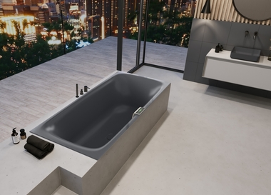 Die freistehende Badewanne Oyo Duo aus der Luxstainability-Serie von Kaldewei wurde von dem Designstudio Diez Office entworfen. Sie verbindet organisches Design und mit der langlebigen Materialität von Stahl-Emaille. Die Innenform bietet auch für das Baden zu zweit hohen Liegekomfort, mit zwei identischen Rückenschrägen und einem Mittelablauf. Die doppelwandige Wanne ist in ausgewählten Farben der Coordinated Colours Collection von Kaldewei erhältlich und kann in zwei Größen geordert werden. Der Freiraum unter der Badewanne ermöglicht eine Installation ohne Estrichaussparung, denn die Ablaufgarnitur kann im Badewannenkörper versenkt werden.