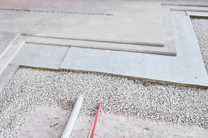 Mit der Rigidur Schalldämmschüttung aus Natur-Anhydrit bietet Rigips eine trockene und schnelle Lösung zur Herstellung einer ebenen Tragschicht unter Trockenestrichen. Dank der hohen Rohdichte von ca. 1 600 kg/m³ verbessert die Schüttung den Trittschallschutz durch Beschwerung der Deckenkonstruktion. Auf Holzbalkendecken erzielt die Schalldämmschüttung im System mit Isover Akustic EP 3 Estrichdämmplatten und Rigidur Trockenestrichelementen einen Trittschalldämmwert von 27 dB bei einer Aufbauhöhe von 100 mm. Die nichtbrennbare Schüttung entspricht dabei der Baustoffklasse A. Darüber hinaus erreichen alle Varianten der Rigidur Estrichelemente in Verbindung mit der Schalldämmschüttung ab 30 mm die Feuerwiderstandsklasse F90. Das Material verzahnt sich beim Verteilen und Abziehen und bildet so eine hoch belastbare, mechanisch gebundene Ausgleichsschicht, die setzungssicher in Schütthöhen von 15 bis 150 mm ist. Der Einsatz von Estrich-Waben oder Bindemittel sowie ein nachträgliches Verdichten durch Stampfen ist nicht nötig. Der Aufbau aus Rigidur Estrichelementen und Schalldämmschüttung gleicht Bodenunebenheiten aus, wordurch Kabel oder Rohre im Boden „verschwinden“. Zudem können alle gängigen Oberbeläge gemäß der Empfehlung in den Verarbeitungsrichtlinien für Fußböden als geprüfte Kombination mit den Estrichelementen zum Einsatz kommen.