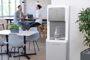 Der sodajet Public der Grünbeck AG ist hygienisch sicher, robust sowie barrierefrei und eignet sich auch für anspruchsvollere Einsatzorte wie Pflegeeinrichtungen, Schulen und Werkstätten. Als praktische One-Box-Lösung vereint der sodajet Public alle Komponenten in einem Gerät und bietet Platz für jede marktübliche 10 kg-CO2-Flasche. Er spendet gekühltes, frisches Tafelwasser in den Sorten still, medium oder sprudelnd und kommt im langlebigen Stahlgehäuse mit beleuchteten, vandalensicheren Tasten. Die sorgfältig geschützte Ausgabeeinheit verhindert eine Rückverkeimung und leicht zu reinigende Oberflächen