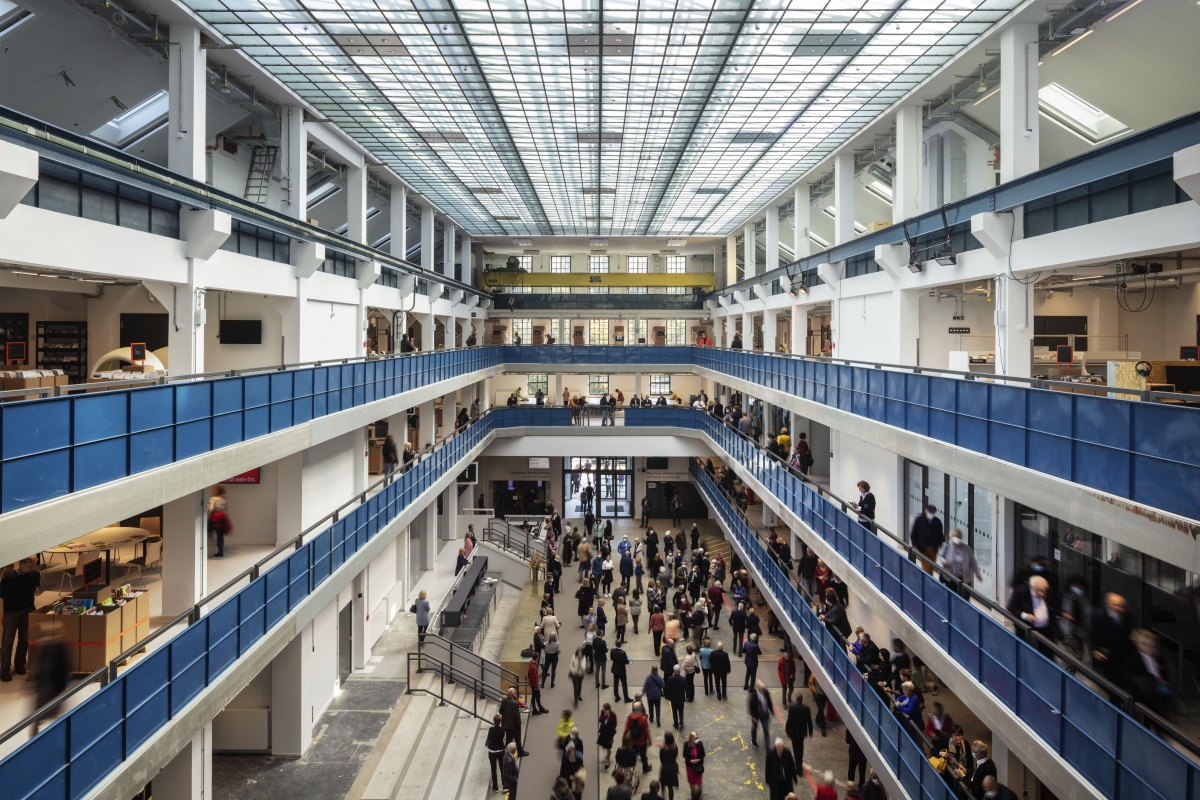 Emotionaler Bestandsschutz: Die gestaltprägende Lichtdecke der ehemaligen Industriehalle ist auch im Kulturkontext ein Highlight