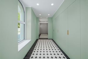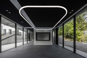 Elektrotechnikhersteller Jung hat den Wohnsitz von Firmengründer Albrecht Jung grundlegend saniert und in ein multifunktionales Begegnungszentrum verwandelt. Die 1928 erbaute Villa in Schalksmühle, wo sich auch die Unternehmens-zentrale von Jung befindet, liegt inmitten der bewaldeten Hügel des Sauerlands. Für das Bauvorhaben galt es, das historische, für die Firmengeschichte bedeutsame Gebäude gleichermaßen zu erhalten wie zu modernisieren. In dem ehemaligen Wohnhaus in Hanglage sind nun ein großzügiger Konferenzbereich, mehrere Büros und zwei Apartments untergebracht. Zugleich erweitert ein Neubau den Bestand um einen rechteckigen, länglichen Pavillon der direkt in den Hang hineingebaut wurde. Helle Holzböden und ein auf die Raumfarben abgestimmtes Mobiliar prägen die lichten Innenräume. Eine skulpturale, mehrfach geschwungene Stahltreppe dient als Bindeglied zwischen der Villa und dem Pavillon. In enger Zusammenarbeit mit den Architekten wurde ein ganzheitliches Lichtkonzept entwickelt, bei dem eine effiziente Allgemeinbeleuchtung mit Bereichen einhergeht, in denen gezielte Lichtakzente gesetzt werden. Als Grundlicht dienen dabei die Strahler Everything 80, die rahmenlos und in die Decke eingespachtelt wurden. Das Lichtsystem Alphabet of Light, das von der Bjarke Ingels Group entworfen wurde, akzentuiert die Aufenthalts- und Repräsentationsbereiche. Dieses besteht aus Grundelementen, die durch Verbindungstücke schattenfrei verbunden werden und in der Villa große, längliche Ovale bilden. In den Fluren leuchtet das LED-Band Dedalo die Deckenausbuchtungen aus, während an den Wänden Aede für optische Akzente sorgt, wobei die Würfel, deren Licht sanft nach unten fließt, im selben Farbton wie die jeweiligen Wände gehalten wurden. Im angrenzenden Treppenbereich sorgt Alphabet of Light Linear in Sonderlänge für das richtige Licht. Zudem sind im Neubau drei der Unterlinden Pendelleuchten von Herzog & de Meuron über einem Tresen angebracht. Ihre spitz geformten, bronzefarbenen Schirme brechen die grau-schwarze Farbpalette und geometrische Strenge der Umgebung, harmonieren dabei jedoch mit der gebürsteten Holzstruktur der Möbel. Der natürlicher Oxidationsprozess der Pendelleuchten wird durch eine transparente Lackierung unterbrochen und macht so jede Leuchte zu einem Unikat. Sämtliche verwendeten Artemide-Leuchten sind ein wichtiger Baustein für das Nachhaltigkeitskonzept des Gebäudes. So hat Artemide für Alphabet of Light eine EPD (Environmental Product Declaration) erstellt, die einen transparenten Einblick in die Umweltauswirkungen des Lichtsystems bietet. Die Umweltdeklaration umfasst dabei den gesamten Lebenszyklus von der Rohstoffgewinnung bis zur Entsorgung.