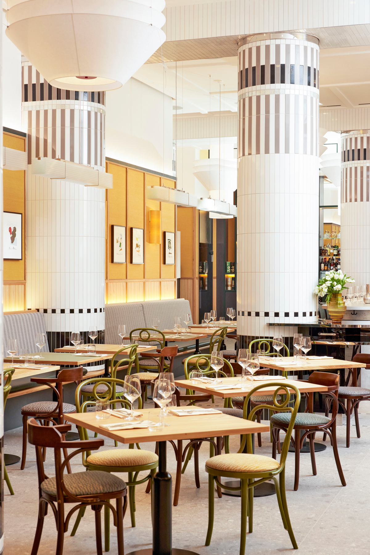 Die massiven Stützen im Restaurant Anni verraten, dass es sich um einen Hochhauskomplex handelt, in dem das Kimpton untergebracht ist