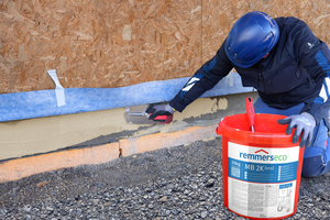 Bei der Weiterentwicklung der 2K-Reaktivabdichtung MB 2K aus dem Hause Remmers besteht die Flüssigkomponente aus einer aus nachwachsenden Recycling-Rohstoffen hergestellten Dispersion sowie aus Naturkautschuk. Zudem wurde das Gummigranulat in der Pulverkomponente durch mineralische Rohstoffe ersetzt. Das Ergebnis ist ein deutlich reduzierter CO2-Fußabdruck und somit eine bessere Umweltbilanz bei gleichzeitig wirksamer Rissüberbrückung, guten Verarbeitungseigenschaften und hoher Abdichtungsqualität. MB 2K [eco] ist gemäß den Prüfgrundsätzen (PG-MDS/FPD) zur Erteilung von allgemeinen bauaufsichtlichen Prüfzeugnissen für flexible mineralische Dichtungsschlämme sowie flexible polymermodifizierte Dickbeschichtungen geprüft. Zudem besitzt MB 2K [eco] den Verwendbarkeitsnachweis für die streifenförmige, außenliegende Fugenabdichtung und Übergänge auf Sohlen aus Beton mit hohem Wassereindringwiderstand im erdberührten Bereich nach den aktuellen Prüfgrundsätzen (PG-FBB 1).
