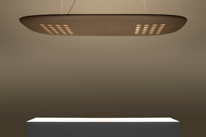 Das Gehäuse der Pendellleuchte ALE.01 von der Unternehmensgruppe Artemide aus dem italienischen Pregnana Milanese besteht aus einem ABS-Verbund mit recycelten Post-Consumer-Materialien (PCR), einer umweltfreundlichen Alternative zu herkömmlichen Kunststoffen, basierend auf recycelten Polymeren. Die Leuchte kann einen Doppelarbeitsplatz beleuchten und kombiniert zwei getrennt steuerbare, direkte Lichtemissionen mit einer diffusen indirekten Lichtverteilung. Die Module für die direkte Emission bestehen aus LED-Lampen, die durch die patentierte optische Refractive-Technologie gesteuert werden. Die Linse nimmt 100 Prozent des von der LED abgegebenen Lichtstrahls auf und gibt ihn ohne Streuverlust an die zu beleuchtende Fläche ab. Die Geometrie des Leuchtenkörpers schirmt die Sicht auf die Lichtquellen in bestimmten Winkeln ab und gewährleistet so eine blendfreie, präzise und gleichmäßige Beleuchtung. Jede optische Einheit lässt sich entsprechend der persönlichen Anforderungen einstellen, wobei die individuelle Steuerung durch Sensoren oder einer Vorprogrammierung ergänzt werden kann. Unter Berücksichtigung des tatsächlichen Bedarfs und in Harmonie mit dem natürlichen Licht wird so eine positive Energiebilanz erzielt.