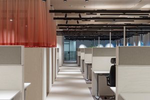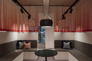 Nach einer umfassenden Renovierung des firmeneigenen Production Offices von Fagerhult am Hauptsitz im schwedischen Habo bietet dieses nun 44 Arbeitsplätze, sieben kleinere Büros, drei Besprechungsräume, einen Pausenraum sowie mehrere Sozialbereiche. Im Sinne eines ressourcenschonenden Sanierungskonzepts wurde auf die Wiederverwendung bestehender Elemente gesetzt: Funktionstüchtige LED-Leuchten, Glastrennwände, Möbel und Akustikelemente wurden aufgearbeitet und erneut integriert. Ziel war es zudem, ein energieeffizientes und adaptives Beleuchtungskonzept zu entwickeln, das sich an unterschiedliche Arbeits- und Kommunikationszonen anpassen lässt. Im Zentrum stand dabei das modulare 230V Schienensystem Control Track Versa von Fagerhult, das über Arbeitsplätzen und Flurzonen installiert wurde. Das System basiert auf abgehängten Einzel- oder Doppelschienen, die werkzeuglos mit verschiedenen Leuchtentypen bestückt werden können. Jede Leuchte verfügt dabei über einen eigenen Treiber, wodurch sich das System sowohl bei Modernisierungen als auch im Neubau eignet. Direkte, indirekte und akzentuierende Lichtquellen können kombiniert und bei Bedarf ergänzt, verschoben oder entfernt werden, ohne Eingriff in die bauliche Infrastruktur. Das Schienensystem unterstützt dabei im Fagerhult Production Office nicht nur die funktionale Ausleuchtung, sondern wird auch als architektonisches Gestaltungselement inszeniert: Die schwarzen Schienen setzen sich markant von den textilen Raumteilern mit rötlichem Farbverlauf ab und schaffen so einen gestalterischen Kontrast. Zum Einsatz in der Schiene kamen unter anderem die linear profilierte Leuchte Notor 36 für eine blendfreie Arbeitsplatzbeleuchtung, VIL für ein weiches, breites Uplight, sowie Zkye 55 G2 Zoom Spotlights zur gezielten Akzentuierung von vertikalen Flächen und Detailzonen. Die Kombination aus diffusem und gerichtetem Licht erzeugt eine dynamische Licht-umgebung mit visueller Abwechslung und hohem Komfort am Arbeitsplatz. Alle Leuchten wurden mit dem intelligenten Lichtsteuerungssystem Organic Response von Fagerhult ausgestattet, dessen drahtlose Plug-and-Play-Technologie passive Infrarotsensoren zur Präsenz- und Tageslichterfassung in Echtzeit nutzt. Die Lichtverteilung erfolgt dabei adaptiv, wodurch sich die Leuchten automatisch ein- und ausschalten oder dimmen, abhängig von der tatsächlichen Raumnutzung und dem verfügbaren Tageslicht. Organic Response ermöglicht so eine bedarfsorientierte Lichtsteuerung und passt sich an verändernde Raumkonfigurationen an, was zur Energieeinsparung und zur Senkung laufender Betriebskosten beiträgt.