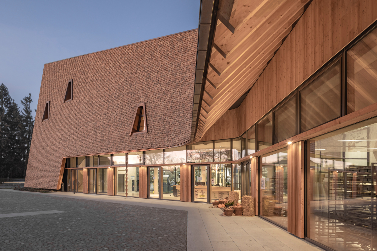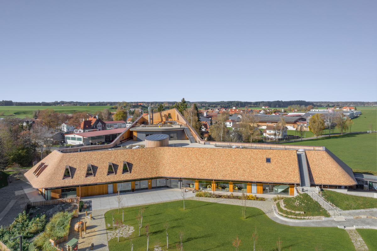 Für den Bioproduzenten Rapunzel Naturkost haben haascookzemmrich STUDIO2050 aus Stuttgart ein Gebäude konzipiert, das gleichermaßen funktionales Besucherzentrum und Erlebnisraum ist. Das Gebäude übersetzt die Werte der Marke in Architektur: nachhaltige Materialien, regionale Baukultur und märchenhafte Bezüge. Die Unternehmensphilosophie des „Hand-in Hand“ zieht sich ihrerseits durch die Realisierung des Projekts: So, wie das Unternehmen mit Bioproduzentinnen weltweit direkt handelt, wurde auch das Gebäude mit lokalen Partnerinnen und Ressourcen realisiert.