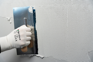 Die Kreativ-Varianten Concento von Brillux satteln bei der Verarbeitung und Farbgebung auf der Kreativtechnik Concento Crush auf. Alle Concento-Versionen beruhen auf einem vergleichbaren Systemaufbau mit gleichen Produkten. Der Unterschied entsteht vor allem durch den Einsatz unterschiedlicher Werkzeuge bei der Erstellung der Grundstruktur. Obwohl das Farbtonspektrum identisch ist, ergibt sich ein deutlich unterschiedlicher Charakter in der Wandgestaltung. Brillux hat 28 abgestimmte Farbtonkombinationen für die Concento-Kreativtechniken entwickelt. Die ausführenden Unternehmen können aber auch eigene Farbtonkombinationen frei umsetzen. Die Variante Concento Long-Line zeichnet sich durch eine linear modellierte Oberflächenstruktur aus. Die Linienführung kann vertikal, horizontal oder individuell ausgerichtet werden. Durch den metallischen Lasurauftrag entsteht eine Tiefenwirkung, die sich je nach Lichteinfall verändert. Concento Dots interpretiert metallische Wandgestaltung deutlich freier. Die ausgeprägte Sprenkeltextur erzeugt eine lebendige, nahezu textile Anmutung mit changierendem Mattglanz-Effekt. Die Variante Concento Crush komplettiert das Trio. Ihre charakteristische Knitteroptik mit metallischem Schimmer wirkt handwerklich und setzt Akzente. Im Zusammenspiel mit Long-Line oder Dots lassen sich so auch Kontraste innerhalb eines Raumkonzepts realisieren.