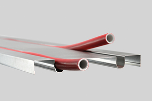 Mit Twin hat Dennert die zweite Generation seines Klimaprofils auf den Markt gebracht, das noch schneller zu installieren ist. Das System aus Metallprofilen mit flexiblen Rohrleitungen wird an der Raumdecke montiert und von warmem bzw. im Sommer von kaltem Wasser durchströmt. Ventile im Flur regeln die Heizschleife in jedem Raum. Durch das Prinzip der Strahlungswärme werden bis zu 50 % Heizkosten eingespart. Zudem wird so gut wie kein Staub aufgewirbelt. Die Reaktionszeit beträgt ca. fünf Minuten. Die Metallprofile werden auf einer Unterkonstruktion aus Dachlatten verschraubt. Sie haben eine Aufbauhöhe von knapp 4 cm.