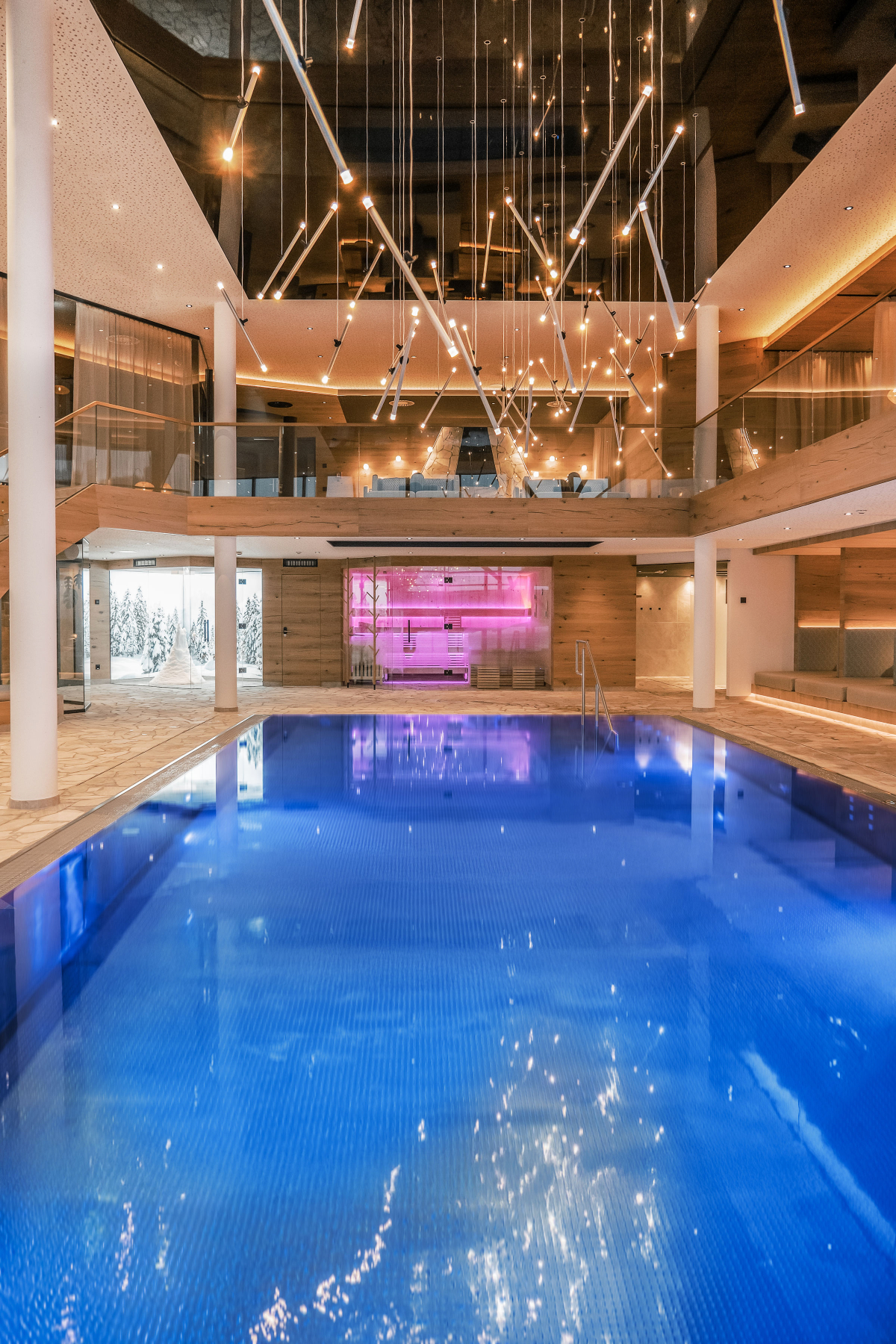 Mit diesen stehen den Gästen nun insgesamt sechs Becken zur Verfügung, wobei bereits in der Planung darauf geachtet wurde, dass auch die Erwachsenen eigene Rückzugsorte nutzen können. Zu den Letztgenannten gehört der sogenannte Sky-Pool, dessen Wasser mit einer Temperatur von 36 °C manch tropisches Gewässer übertrifft und den Badenden einen spektakulären Panoramablick bietet. Ein weiterer Infinity-Pool im Außenbereich wird mit 34 °C betrieben; beide Temperaturen sind ideal für Entspannungsbäder.