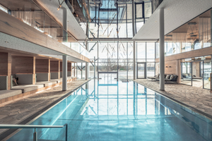 Um den energetischen Aufwand und damit die Unterhaltskosten überschaubar zu halten, setzen die Betreiber auf ein eigenes Bio-Heizkraftwerk sowie auf die Schwimmbadtechnik von Ospa aus Mutlangen. Die Wasseraufbereitung des Herstellers kommt immer dort zum Einsatz, wo hohe Anforderungen an die Qualität des Badewassers formuliert werden. Um das zu erreichen, sind die einzelnen Anlagekomponenten von der Mess- und Regeltechnik, über die FU-Pumpen und die Filter bis hin zur Salzelektrolyse-Desinfektion genau aufeinander abgestimmt. Die Anlage misst und überwacht den Chlor- wie den pH-Wert sowie das Redox-Potential und die Temperatur. Eine digitale Steuerungseinheit erfasst sämtliche Daten und managt die Dosieranlagen automatisch über ein Bussystem. Die gesamte Technik lässt sich via Internet mittels Smartphone oder Tablet kontrollieren, was Energie- und Personalkosten einsparen hilft. Die Anlage kann außerdem über gängige Schnittstellen in die Leittechnik integriert werden.