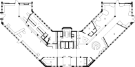 Im EG und UG des mittleren Hotel-Turms sind alle öffentlichen Bereiche wie Deli, Lounges, Außenterrassen, Check-in, Waschlounges, Spielzimmer für Groß und Klein sowie ein Fitnessraum untergebracht.
