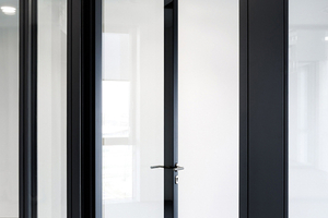 Das Glas-Türelement fecotür A105 der Karlsruher feco-Gruppe kommt mit einem schlanken Aluminiumrahmen, einer beidseitig wandbündigen Doppelverglasung und mit serienmäßig hoher Schalldämmung. Das 105 mm tiefe Glas-Rahmen-Türblatt ist beidseitig flächenbündig zur Türzarge sowie den angrenzenden Wandelementen und schafft mit dem flurseitig nur 65 mm schmalen Aluminiumrahmen eine hohe visuelle Transparenz. Der große Abstand der reversibel eingebauten Doppelverglasung gewährleistet in Verbindung mit den beiden Dichtungsebenen je nach Glasart einen Schalldämmprüfwert von Rw,P = 40 oder 42 dB. Der umlaufende Türblattrahmen kann wahlweise in Aluminium natur EV1 eloxiert oder pulverbeschichtet in allen gängigen RAL-Farbton geliefert werden. Die passende Aluminium-Türzarge mit bandseitig 18 mm und flurseitig 50 mm Spiegelbreite verbindet das Türelement fecotür A105 mit der gestalterisch passenden wandbündigen Doppelverglasung fecofix sowie mit anderen feco-Systemwänden in 105 mm Wandstärke.