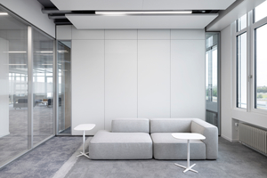 Im Vorstands- und Konferenzbereich erfüllt die Doppelverglasung fecofix mit Rw,P = 47 dB hohe Anforderungen an den Schallschutz. Flurseitig flächenbündige Holztürelemente wie die fecotür H85 und flurseitig verdeckte Zargen mit Rw,P = 42 dB ergänzen diese Systemwandlösung. Schrankwandanlagen und Vorwandverkleidungen runden das feco-Leistungsspektrum ab. Bei den Bürozwischenwänden entschied sich der Auftraggeber für die Ausführung aller Bürowände als Vollwand fecowand. Im Sinne von Nachhaltigkeit und Wirtschaftlichkeit sind feco-Systemwände zerstörungsfrei versetzbar und unter Wiederverwendung aller Systemteile de- und remontierbar. So kann auch in Zukunft flexibel auf geänderte Grundrissanforderungen reagiert werden.
