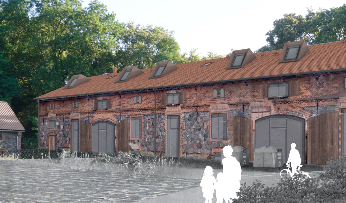 Unsere Aufgabe sollte es sein, den denkmalgeschützten Schafstall zu einem Mehrfamilienhaus mit 24 Wohnungen (zwischen ca. 42 und 153 m² Wohnfläche) und einer Gemeinschaftseinheit (78 m² Wohnfläche) umzubauen.