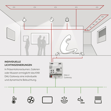 Das für DALI-2 zertifizierte Jung Gateway bietet die Möglichkeit, DALI-Sensoren (z. B. Tastsensoren, Drehsensoren, Präsenzmelder oder Lichtsensoren) als Eingabegeräte zur Steuerung von DALI Gruppen...