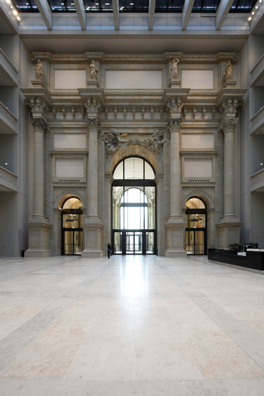 Tapete? Seis drum, keine barocke Tapete. Kuppel? Warum nicht, wenn Kuppelliebhaber in der ganzen Welt dafür Geld spenden. Beim Kreuz wirds schwieriger, beim Kaiser-Vers unterhalb der Kuppel hört es dann ganz auf. Die Hoffnung ruht jetzt auf dem Team um Hartmut Dorgerloh, Kunsthistoriker, Denkmalpfleger, Ostdeutscher und seit dem 1. Juni 2018 Generalintendant des Humboldt Forums. Wird er die Aufgabe bewältigen, zwischen allen Anspruchnehmern zu vermitteln? Wird es ihm und seinem Team gelingen, die als schmerzhaft von manchem empfundene Lücke - die die Schlosskopie ja nicht füllen kann - im Herzen der Hauptstadt kulturell zu schließen? Und was ist mit der Geschichte der Ethnologischen Sammlung(en), die bereits in großen Teilen eingezogen sind und deren Ausstellungsort Berlin/Schloss Fragezeichen aufwirft, die der Souverän in seiner souveränen Entscheidung für das Schloss offenbar nicht mitgedacht hatte.