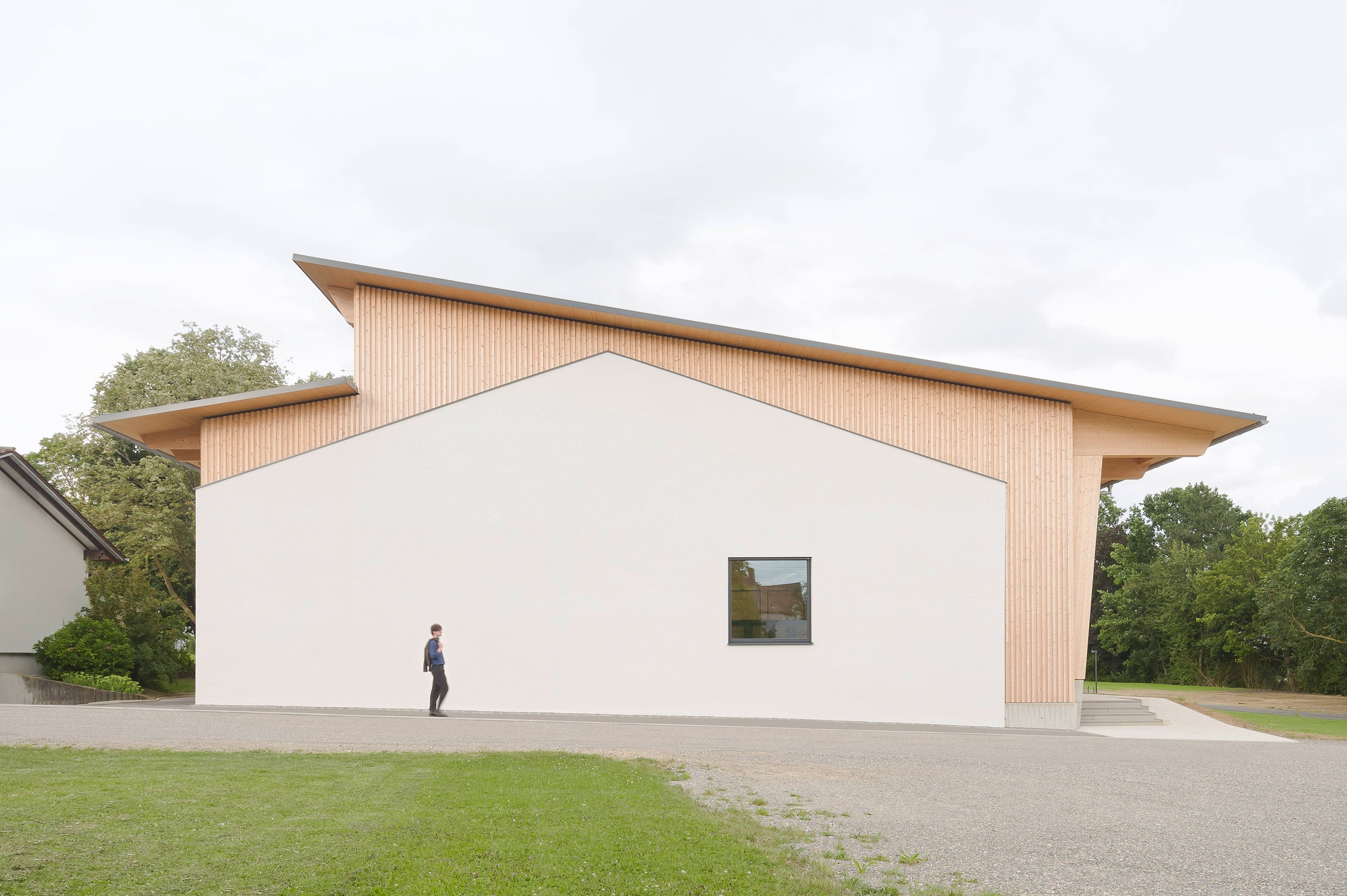 - Projekt: Mehrzweckhalle Ingerkingen, Verfasser: Atelier Kaiser Shen, Stuttgart. Bauherr: Gemeinde Schemmerhofen (in der DBZ 05 2025 zum Thema Tragwerk)