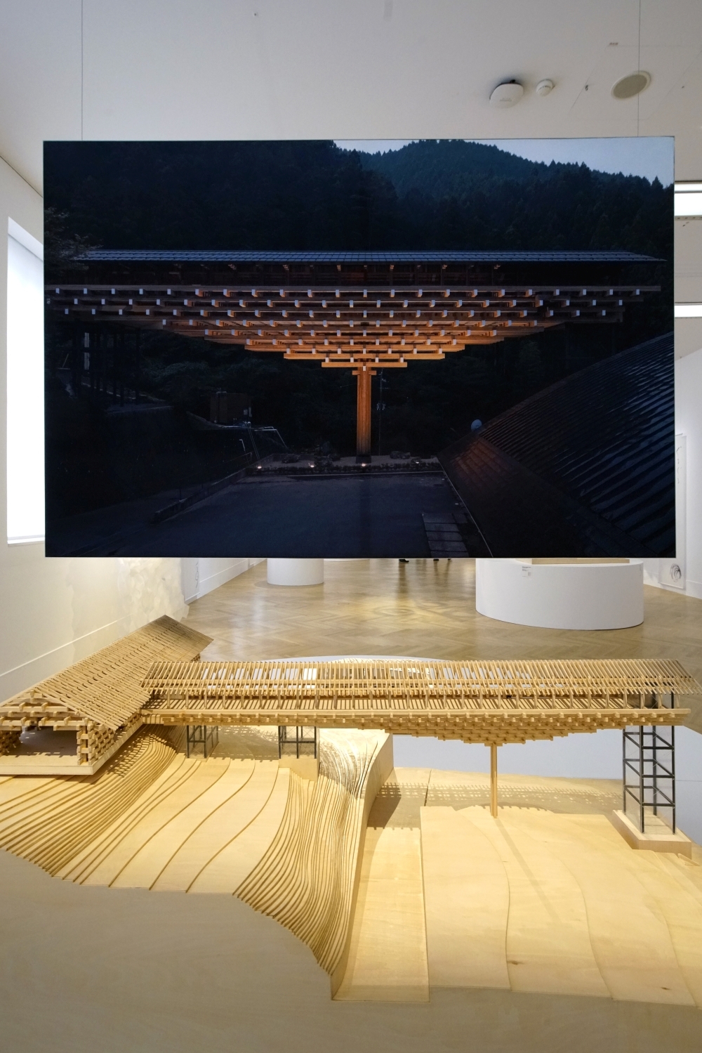 Kengo Kuma (*1954) ist in Yokohama geboren. Er hat weltweit gebaut, seine Gebäude stehen in Japan, aber auch in ganz Europa, Vereinigten Staaten, China und Australien. Die Ausstellung ist eine Übernahme aus dem Palazzo Cavalli-Franchetti, die anlässlich der Architekturbiennale 2023 entwickelt worden ist.