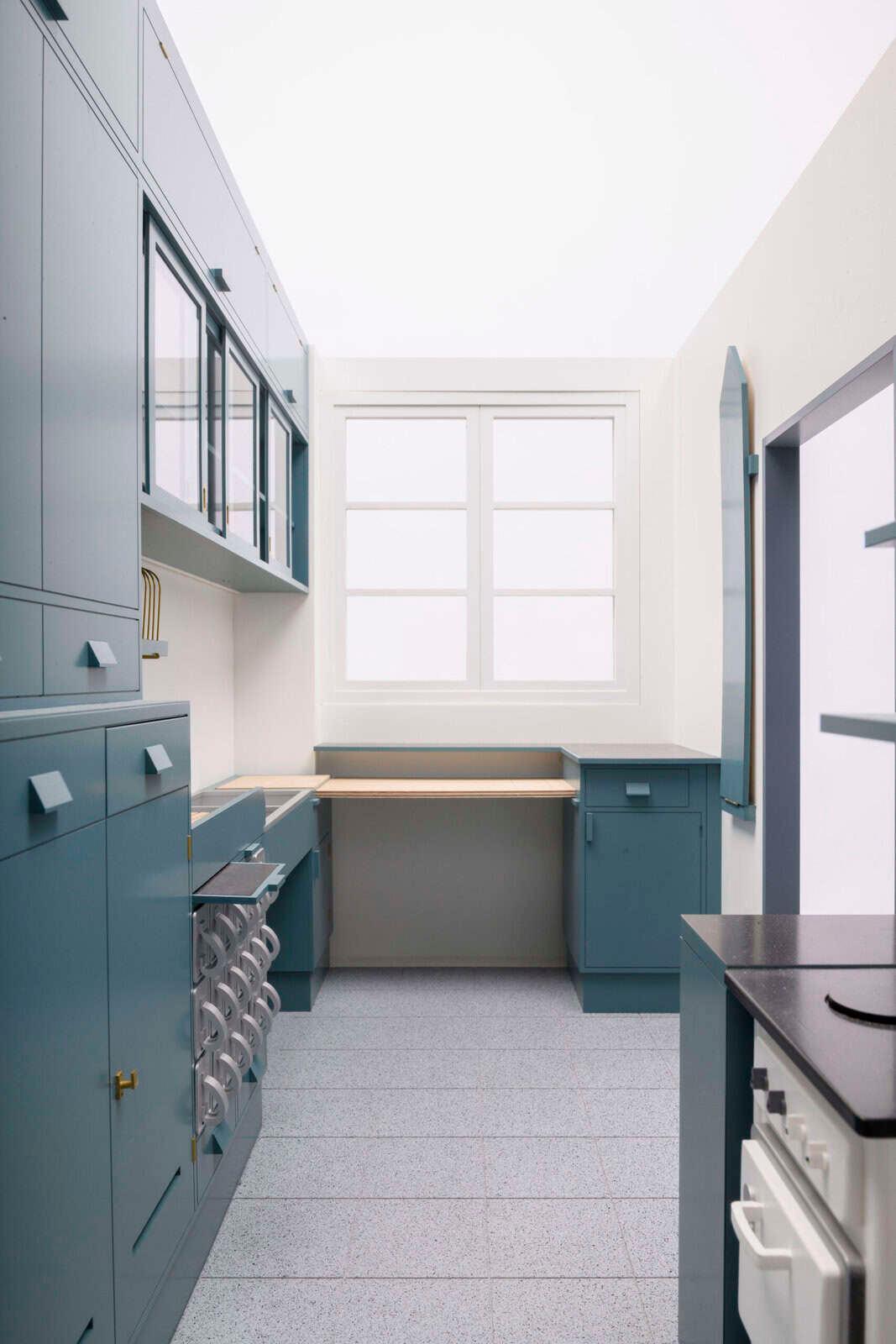 Margarete Schütte-Lihotzky: Frankfurter Küche, 1927 – Modell Maßstab 1:5, Holz, Acrylglas und Polystyrol, mad-Modellbau, 2019