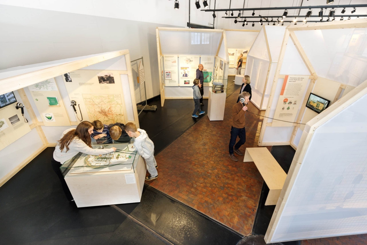Blick in die Sonderausstellung „Zukunft Bauen. Wie wollen wir wohnen und leben?“.