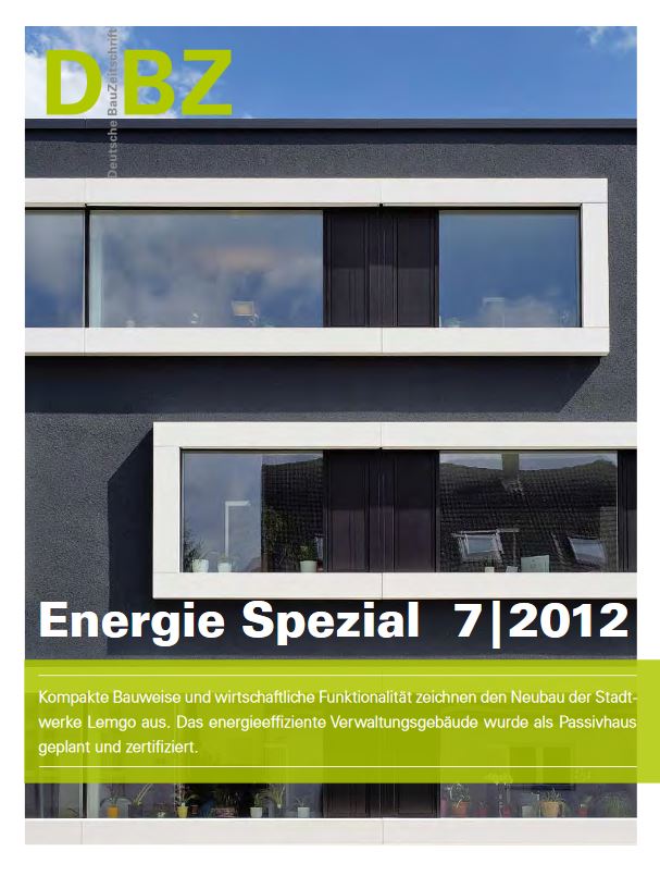 Kompakte Bauweise und wirtschaftliche Funktionalität zeichnen den Neubau der Stadtwerke Lemgo aus. Das energieeffiziente Verwaltungsgebäude wurde als Passivhaus geplant und zertifiziert.