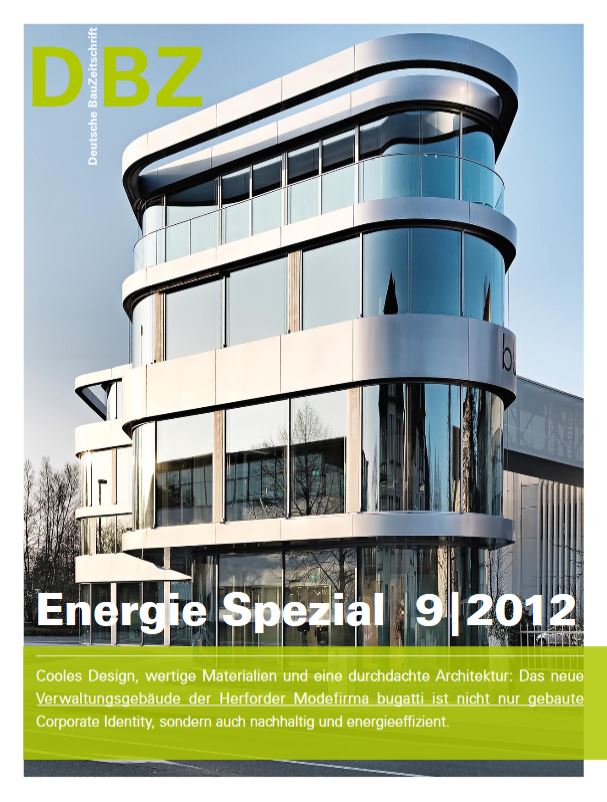 Wie gut im Gewerbebau Energieeffizienz und Corporate Design zusammen gehen können, zeigen die Beiträge über den bugatti Verwaltungsbau in Herford und eine Studie über einen nachhaltigen Supermarkt.