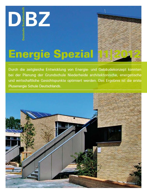 Durch die zeitgleiche Entwicklung von Energie- und Gebäudekonzept konnten bei der Planung der Grundschule Niederheide architektonische, energetische und wirtschaftliche Gesichtspunkte optimiert werden. Das Ergebnis ist die erste Plusenergie Schule Deutschlands.