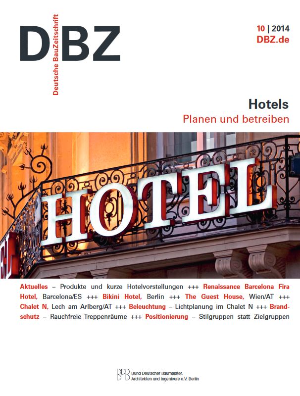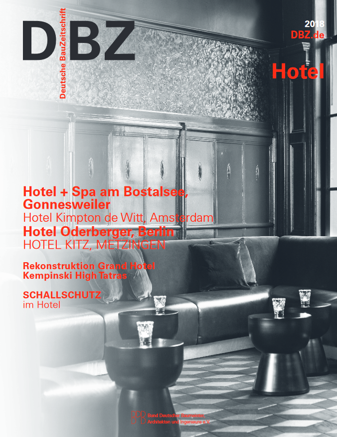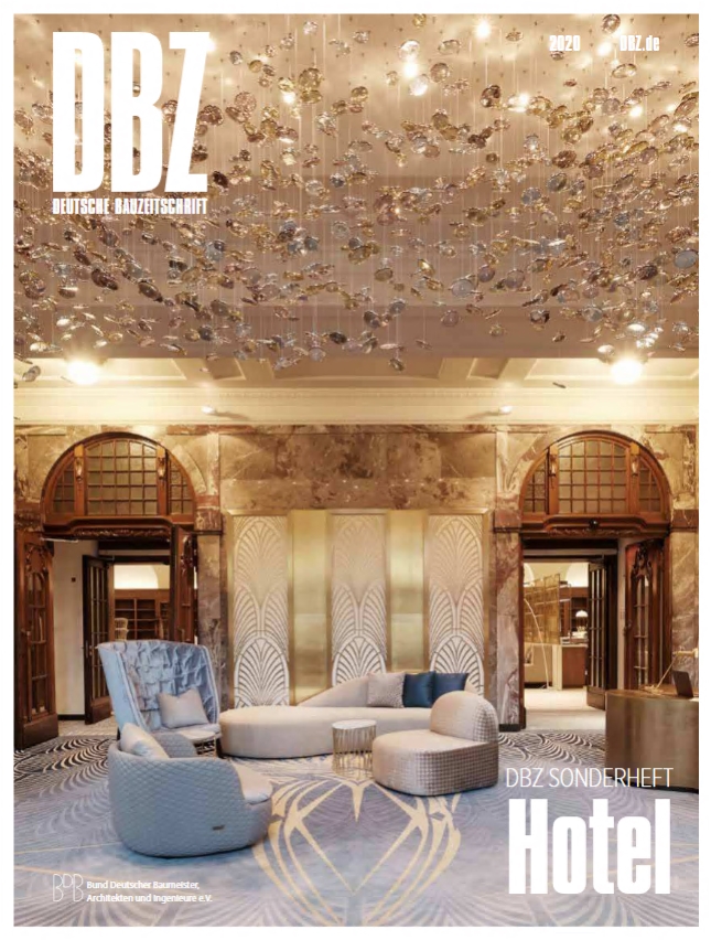 In den DBZ Sonderheft, dass jährlich im Herbst erscheint, berichten wir über Projekte mit ihren spezifischen Konzepten oder architektonischen Lösungen. Hier geht es zum einen um Neubauten, aber auch um Bestandsgebäude, die für eine zeitgemäße Hotelnutzung umgebaut oder renoviert und saniert werden. Die Fachbeiträge informieren rund um die Themen, die im Hotelbau im Fokus stehen: Schallschutz, Brandschutz, Klimatisierung, Beleuchtung Materialität, Energieeffizienz und vieles mehr.