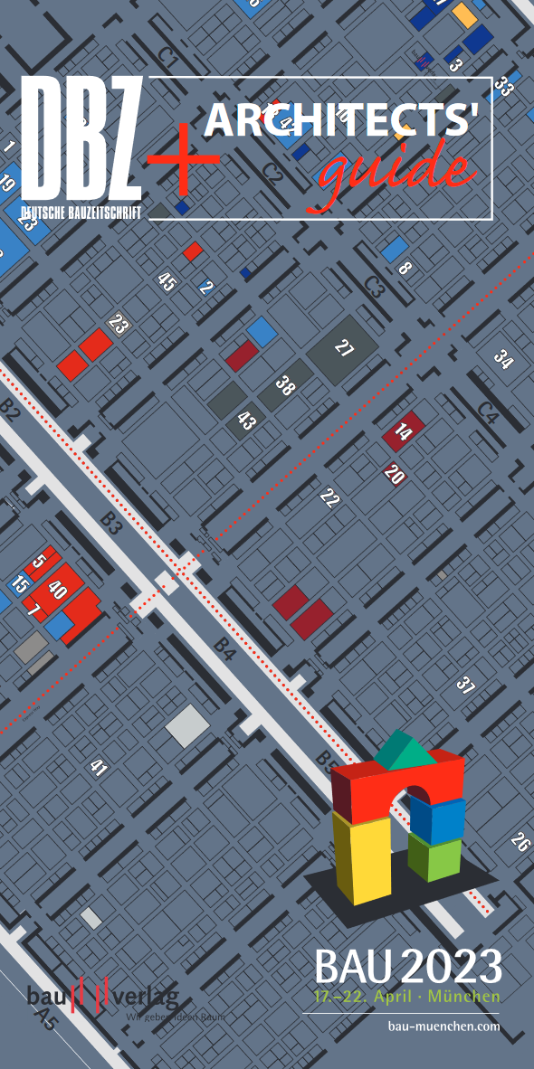 Wir laden Sie herzlich ein zu einem Besuch auf unserem Bauverlag Stand in der Halle C2 (Stand 504). Von dort starten unsere Architektenrundgänge. Nebenan findet das Forum „Zukunft des Bauens“ statt. Dort haben auch wir namhafte internationale Architekten eingeladen, die über neueste Entwicklungen in den Bereichen Digitale Transformation, Herausforderung Klimawandel und Zukunft des Wohnens berichten. Nähere Informationen dazu finden Sie auf Seite 4 – 7.